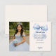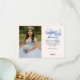 A birthday Thank You photo card. A soft beige, cream coloured background. Decorated with a large light blue bow. Personalise and add your photo and thank you note.