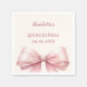 An ivory, cream background color. Decorated with a large pink bow. Personalize and add the name and date.