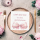 A white background color. Decorated with a large pink bow. Personalize and add the name and date. Text: Happy Birthday!