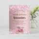 A blush pink gradient background decorated with pink faux sparkles, confetti and a romantic vintage carriage. Personalise and add her name, party details.