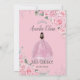 Quinceañera Pink Floral Princess Silver Birthday Invitation