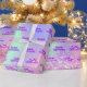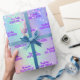 Elegant, girly, glamourous style party gift wrapping paper for a Quinceañera, 15th birthday. A trendy iridescent background with unicorn and rainbow colours in pink, purple, rose gold, mint green. Decorated with blush pink faux glitter. Personalise and add a name and text. Purple coloured letters.