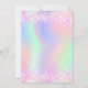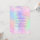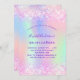 A girly and feminine Quinceañera, 15th birthday party invitation. On front: A rainbow, holographic coloured background in purple, pink, mint green, rose gold. Decorated with blush pink faux glitter, sparkles. Personalise and add a name and party details. The name is written with a hand lettered style script, purple coloured letters.