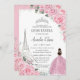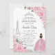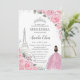 Quinceañera Pink Roses Floral Paris Eiffel Silver Invitation