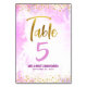 Quinceañera Pink Watercolor Gold Script Glitter Table Number
