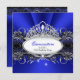QUINCEANERA 15 Birthday Princess Pretty Royal Blue White Diamonds Tiara and black lace. 15th Birthday Party. All occasions Birthday Party womens girls. Customise with your own details and age. Template for Sweet 16, 16th, Quinceanera 15th, 18th, 20th, 21st, 30th, 40th, 50th, 60th, 70th, 80th, 90, 100th,