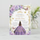 Quinceañera Purple Lilac Rose Floral Gold Princess Invitation