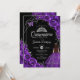 Purple black and silver Quinceanera celebration invitation. Features brunette girl in ball gown dress, script font, silver butterflies, watercolor roses and tiara. Perfect for an elegant princess style glam celebration. Personalize with your own details. Printed Zazzle invitations or instant download digital printable template.
