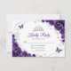 Purple silver and white floral Quinceanera RSVP reply card. Features, script font, silver butterflies, watercolor roses and tiara. Perfect for an elegant princess style glam celebration. Personalize with your own details.