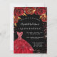 Quinceanera red black glitter dress florals invitation