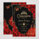 Quinceanera Red Gold Butterfly Dress Floral Invitation