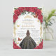 Quinceañera Red Roses Floral Black Dress Gown Gold Invitation