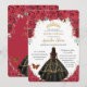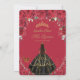 Quinceañera Red Roses Flowers Black Dress Gold Invitation
