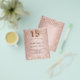 For an elegant Quinceañera, 15th birthday party. A rose gold gradient background. Decorated with rose gold faux glitter dust. Personalise and add a name and party details. The name is written with a hand lettered style script. Number 15 is written with a balloon style font.