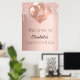 A welcome poster for a girly and glamorous Quinceañera (or any age) birthday party. A rose gold background decorated with drips, paint dripping look, balloons. Personalize and add a name and age.
