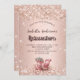 A rose gold gradient background decorated with confetti and a romantic vintage carriage. Personalise and add her name, party details.