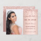 On front: Add a vertical size photo. An elegant rose gold, blush gradient background colour, decorated with drips, paint dripping look. Personalise and add a name and details.