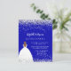 A modern, stylish and glamourous invitation for a Quinceañera, 15th birthday party. A royal blue background with faux glitter dust, a girl wearing a ball gown. The name is written with a modern hand lettered style script. Personalise and add your party details.