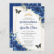 Quinceañera Royal Blue Floral Butterflies Birthday Invitation