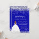 A modern, stylish and glamourous invitation for a Quinceañera, 15th birthday party. A royal blue background with faux glitter dust, a girl wearing a ball gown. The name is written with a modern hand lettered style script. Personalise and add your party details.