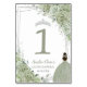 Quinceañera Sage Green Floral Silver Girl Dress Table Number