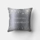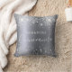 A pillow for a Quinceañera, 15th years old girls room. A faux silver background with faux glitter dust. The text: Quinceañera is written in white with a large modern hand lettered style script. Personalise and add a name.