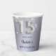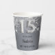 For a glamourous and girly for a Quinceañera, 15th birthday party. A faux silver metallic looking background. On the front and the back: Personalise and add a name and a date. Decorated with faux glitter dust.