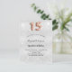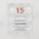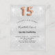 A modern, stylish and glamourous invitation for a girl's Quinceañera, 15th birthday party. A faux silver looking background, decorated with glitter dust. Personalise and add your name nad party details. Number 15 is written with a rose gold balloon style font, script.
