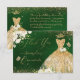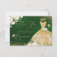 Quinceanera Thank You Green Gold Glitter Gown Card