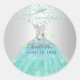 Quinceanera Turquoise Glitter Gown Classic Round Sticker
