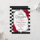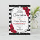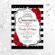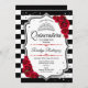 Features stripes, script font, red roses, tiara and confetti. Classy design with faux glitter silver. Perfect for an elegant glam celebration.