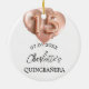 An ornament for a girly and glamourous Quinceanera, 15th birthday . A white background with rose gold balloons. Personalise and add a date, and name.