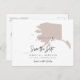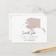 This travel themed save the date postcard features a blush Alaska map and postcard backing. Easily change the colours and move the heart around to highlight your destination. Edit *most* wording to match your needs and easily add a special message to the backside of the invitation.
