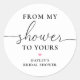 These from my shower to yours soap and bath salts favour sticker feature a modern minimalist design. The script heading is an image that cannot be edited. All of the other text is fully editable. For more advanced customisation of this design, simply select the "Customise It" button above.