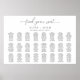 This seating chart poster features a modern minimalist design and 24 tables layout. The script text heading is an image that cannot be edited. The heading image can be resized to fit any poster size. All of the other text is fully editable. For more advanced customisation of this design, simply select the "Customise It" button above.