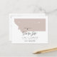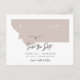 This travel themed save the date postcard features a blush Montana map and postcard backing. Easily change the colours and move the heart around to highlight your destination. Edit *most* wording to match your needs and easily add a special message to the backside of the invitation.