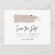 This travel themed save the date postcard features a blush Puerto Rico map and postcard backing. Easily change the colours and move the heart around to highlight your destination. Edit *most* wording to match your needs and easily add a special message to the backside of the invitation.