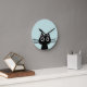 Quirky Black Kitty Cat with Long Whiskers Round Clock
