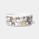 This charming cat bowl features an adorable and whimsical design of various cartoon cats in different colours and patterns, including grey, black, white, and orange. Each cat has a unique expression, and some are even wearing glasses, adding to the playful and fun aesthetic. The background is white, which makes the colourful cats stand out beautifully. It can be customised with your cat's name by clicking "Personalise this template."