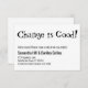 In this fun piece, a playful font was used to render the words "Change is Good!" and "Stay in Touch!" on the back. Your details will appear in a complementary sans-serif font. The background can be changed to any colour you prefer and fonts and layout are also fully customisable.
