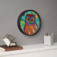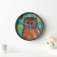 Cute red, blue, purple and brown quirky owl and leaves folk art style AI art.