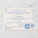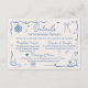 Add a touch of vintage charm to your wedding with this quirky French-inspired details card. Featuring whimsical blue line art illustrations of bows, drinks, and a disco ball, this design beautifully lays out all the essential reception, dinner, and travel information. Perfect for couples who want a unique, stylish way to keep guests informed.Add a qr code at the back for more info.