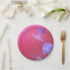 Artistic photograph of purple jellyfish floating in luminous pink water.