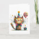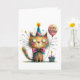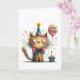 Quirky Orange Cat with Party Hat and Cake Birthday Card