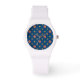 A chic White Sporty Wristwatch, with a pattern of quirky Jumbo Polka Dots in Red, Green and Yellow, on a Navy Blue background that you can change if you wish. Part of the Posh & Painterly 'Rangoli' collection, this pattern can be adjusted to fit any wristwatch.