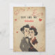 Celebrate love with our unique Quirky Retro Valentine's Day card features a hand-drawn retro quirky pin-up couple embracing , on a distressed parchment background with subtle romantic hand-drawn little hearts. Designed in a quirky retro commercial art style with a soft, muted color palette, it blends everlasting romance and nostalgic pin-up aesthetics for a bold alternative Valentine’s vibe.