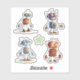 Set of 4 vinyl stickers, quirky robot designs 5 - 8. Perfect for party favours, stocking stuffers, classroom prizes, or scrapbooking. Can be cut into 4 individual stickers, as desired.
