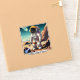 A whimsical cartoon astronaut bounces joyfully across the colourful surface of a distant planet, surrounded by quirky alien landscapes. The light-coloured background enhances the playful scene, inviting viewers to imagine the wonders of space exploration and the thrill of discovering new worlds.
