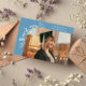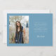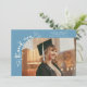 Quirky and whimsical graduation announcement photo card featuring a photo on the front and 1 on the back. The text says "thank you" in quirky hand writing with stars and confettis. Add the graduate's name, information, and message to personalise this card. Denim blue.