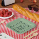 Quirky and fun graduation party plate featuring hand drawn wavy line as a frame. The background is green.